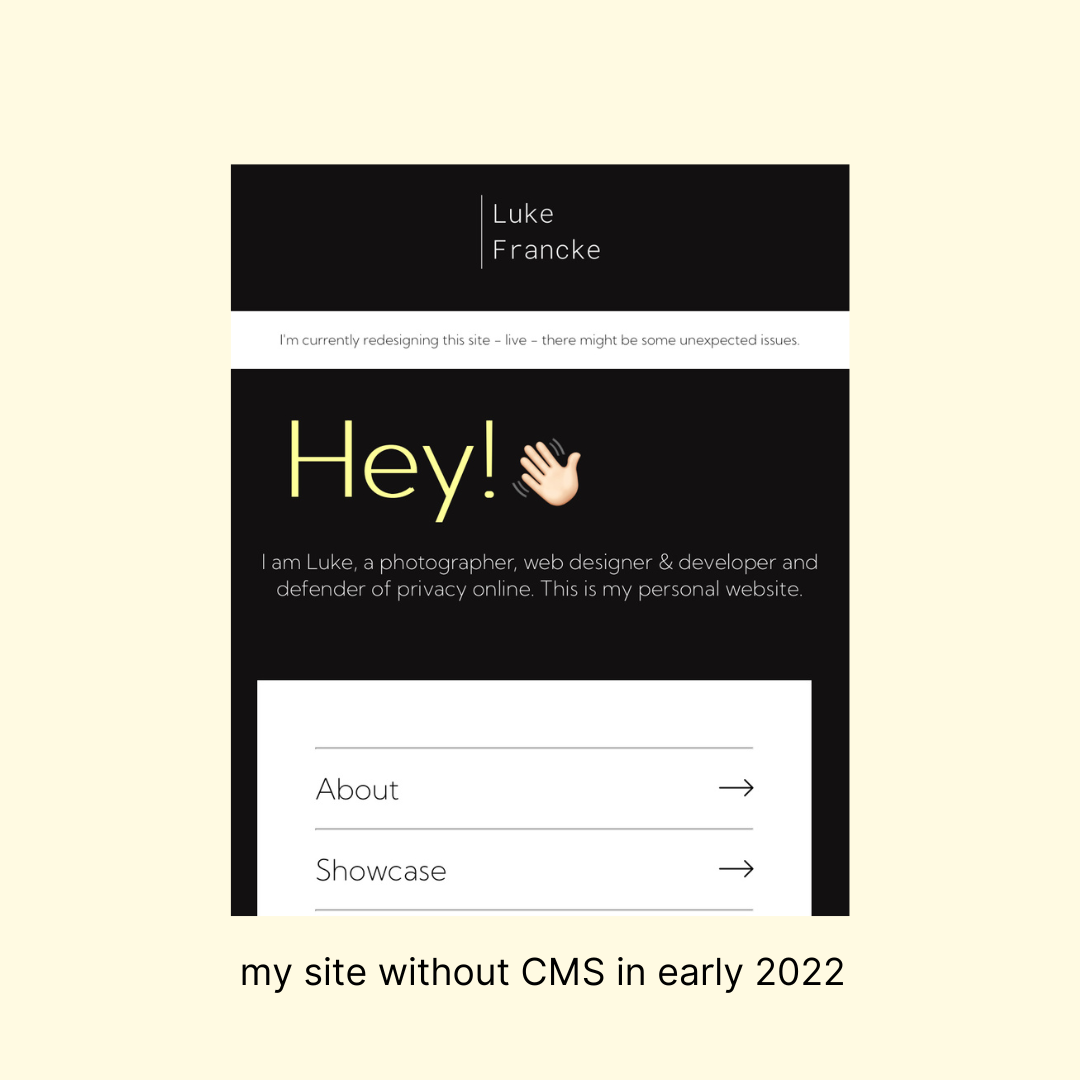 When I launched this site in March 2021, it was running on WordPress. However, I was never satisfied with the speed (despite the good server performance) and the customization options. I kept trying new themes, designs and options, but was never satisfied. After some time and a break, I decided to rebuild the site from scratch myself without CMS. I succeeded and the performance was much better. However, this version of my site was never quickly customizable, as I had to update each change e.g. at the footer on each page individually, so that it appeared everywhere. The performance was really sensational, but the design was too difficult.